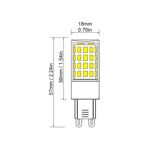 | 18*57mm | AC 120V / 220V | 4.5W | 450lm | yes | > 0.82 | Ceramic+PC | 2700~7000K | >80 |